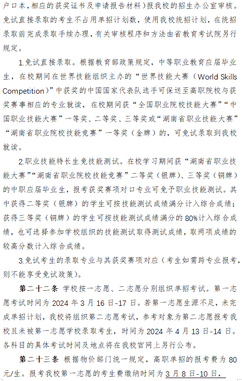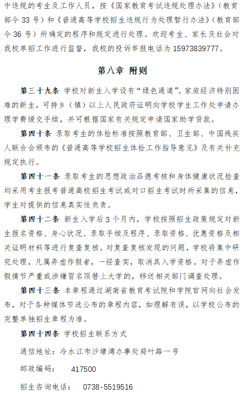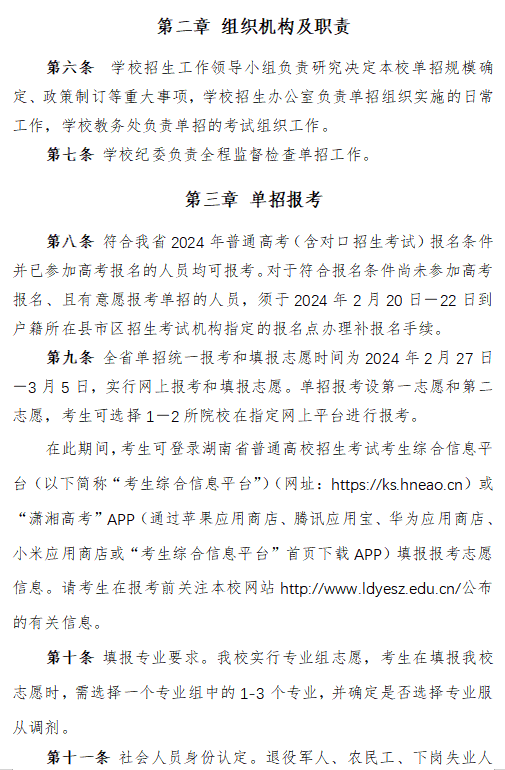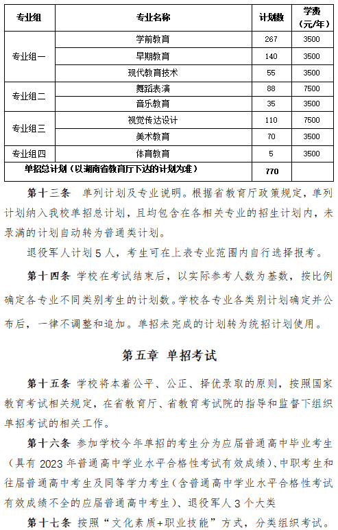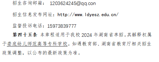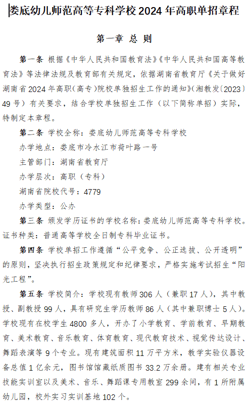 娄底幼儿师范高等专科学校2024年高职单招章程